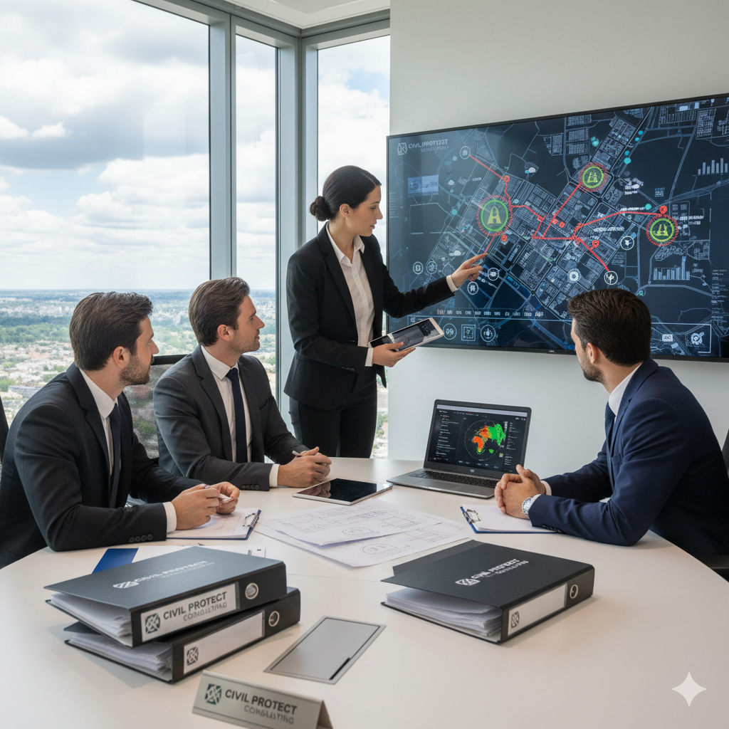 La consultoría en protección civil es un servicio especializado que asesora a las organizaciones en el diseño, implementación y mantenimiento de sistemas integrales para la gestión de riesgos que puedan afectar la continuidad operativa, la integridad de las personas y los activos de la empresa.