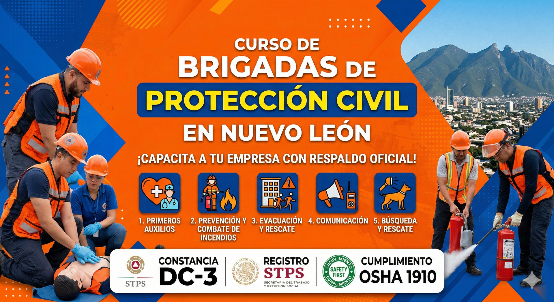 Brigadas de emergencia — Formación de equipos de respuesta ante incendios, evacuación, primeros auxilios y búsqueda y rescate, conforme a la NOM-002 y NOM-029-STPS.