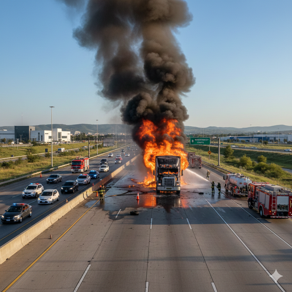 Apodaca, Nuevo León – 20 de noviembre de 2025 Un accidente vial provocó el incendio de un tractocamión en la autopista Monterrey-Aeropuerto Mariano Escobedo, a la altura del Parque PIIT en Apodaca, generando fuerte caos vial durante la noche del miércoles y madrugada del jueves. Bomberos de Nuevo León, coordinados por el Director de Operaciones Alejandro Zuñiga (@saz2000), acudieron de inmediato al lugar y trabajaron varias horas para controlar el fuego y realizar labores de enfriamiento. El incidente obligó al cierre total de la autopista en ambos sentidos. Alrededor de las 02:00 horas de este jueves se liberó un carril por dirección, aunque la circulación sigue siendo lenta y con precaución. No se reportan personas lesionadas de gravedad. Las causas del accidente aún se investigan. Este evento ocurre mientras el Frente Frío núm. 15, reportado por el Servicio Meteorológico Nacional (@conagua_clima), genera rachas de viento y condiciones climáticas adversas en el norte de México, lo que pudo haber sido un factor. Autor: Israel Valdez Fecha de publicación: 20 de noviembre de 202