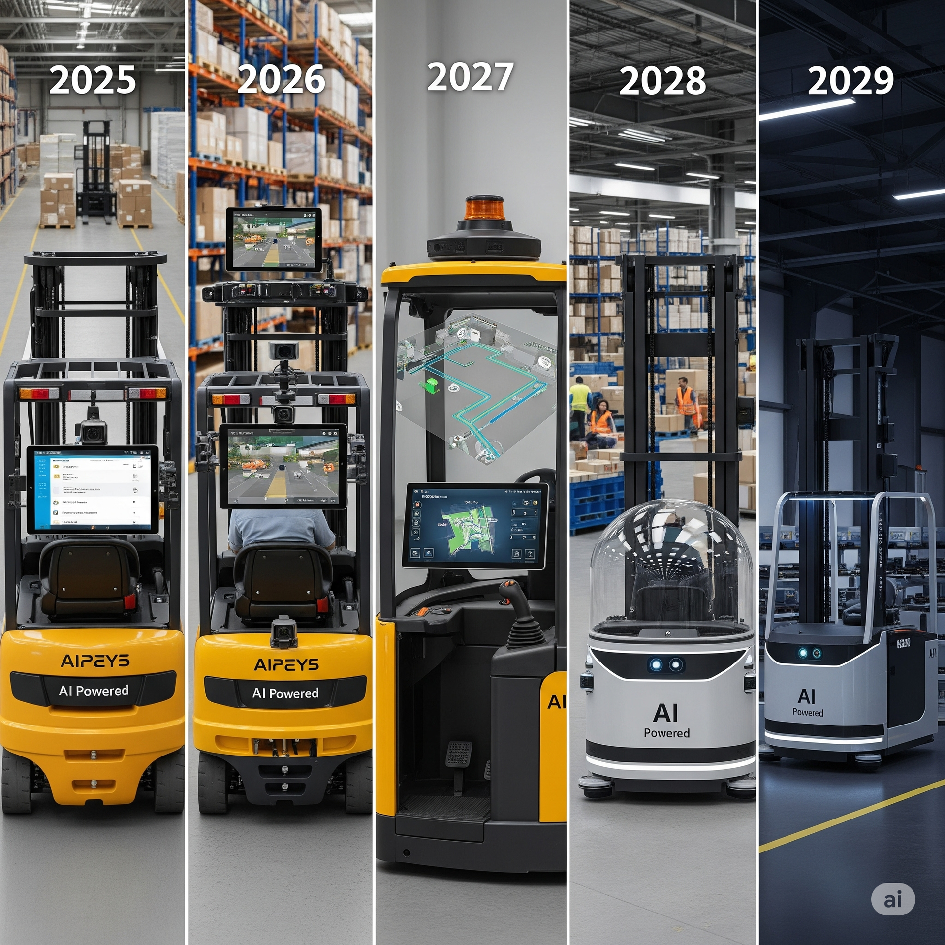 Evolución de la IA en montacargas (2025-2029)